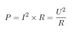 Зная закон Ома, можно заметить, что мощность можно рассчитать иначе: