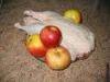 Утка – 1 тушка Картофель – 2 шт Яблоки Свиной жир – 0.5 стол. л. Для теста: Мука – 3 – 4 стакана Вода – 500 мл Сахар – 1 стол. л. Свиной жир – 2 стол. л. Яйца – 1 шт Для соуса: Сметана – полстакана Чеснок – 3 дольки Сахар Кетчуп – 0.5 стол. л. Перец, соль