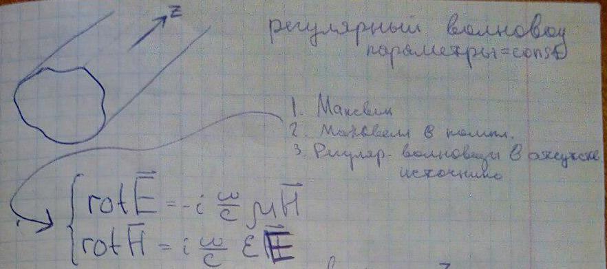Рассмотрим регулярный волновод, при условии, что в нем нет источников.