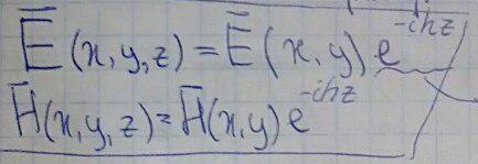 Вдоль оси z ничего не меняется и тогда мы предполагаем, что вдоль z распространяется плоская бегущая волна.