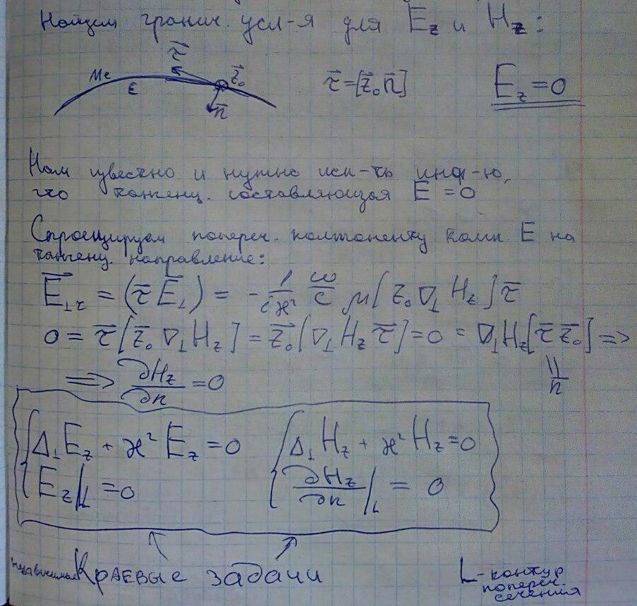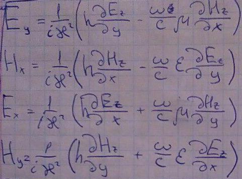 В исходной задаче было 6(!) неизвестных волновых компонент, а благодаря приведенным выше упрощениям мы пришли к двум продольным неизвестным Ez и Hz.