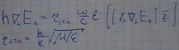 1. ТЕ-волна. Следующие соотношения получаются из уравнений, связывающих поперечные компоненты полей с продольным и последующей подстановкой в них граничного условия Леонтовича.