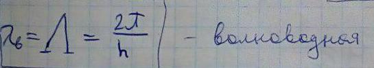 Из данных зависимостей следует, что если продольное волновое число действительное, то волна распространяющаяся, а если мнимое, то волна экспоненциально убывающая. Следовательно, существует граница между этими типами волн.