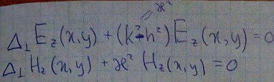 В результате получили две краевые задачи, которые независимы друг от друга, следовательно в волноводе существует два типа независимых волн.