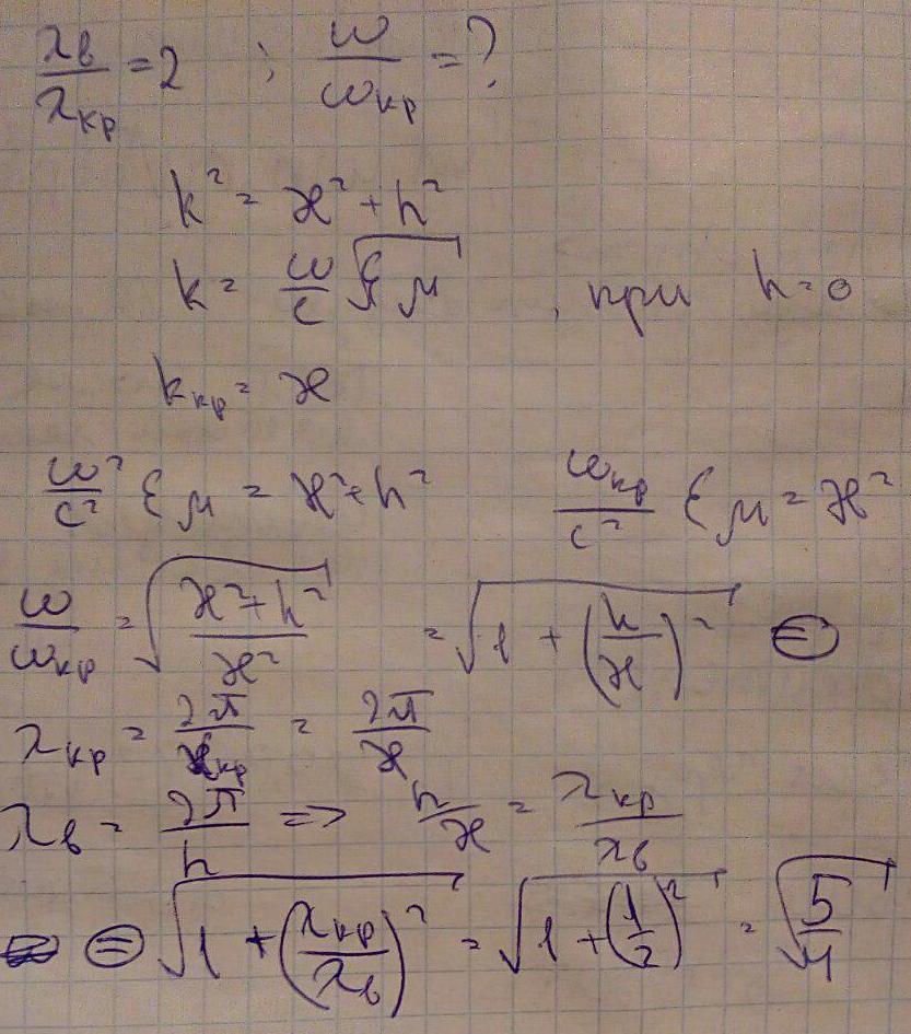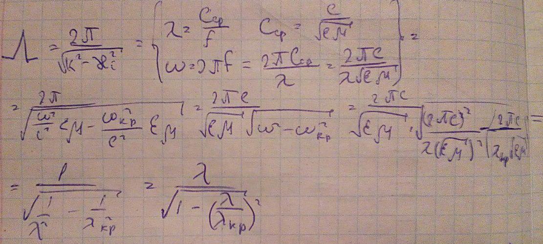 Принято выражать длину волны в волноводе через длину волны в свободном пространстве и критическую длину волны данной моды: