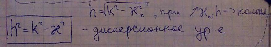 При этом поперечные и продольные составляющие волнового числа связаны дисперсионным уравнением, которое получается из волнового уравнения: