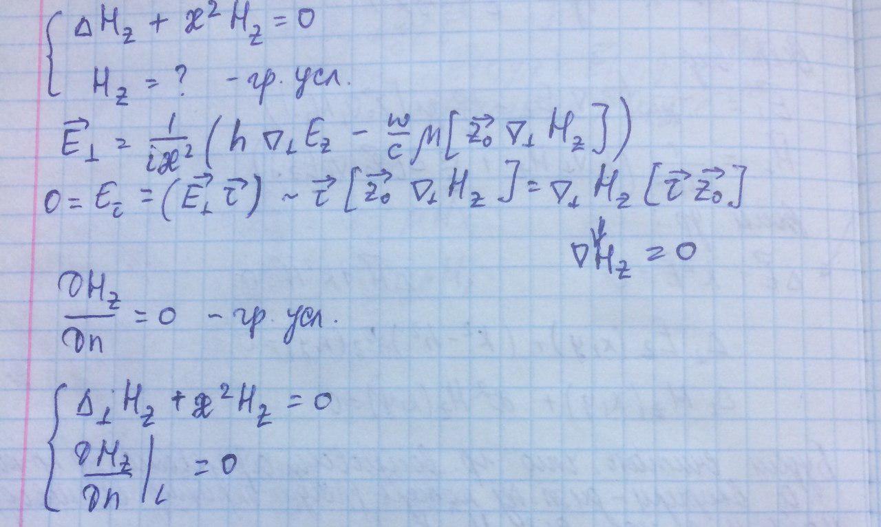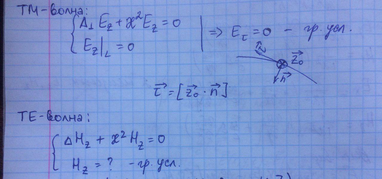Вывод: таким образом, задача об определении электромагнитного поля в волноводе сводится к нахождению решений двумерного волнового уравнения.