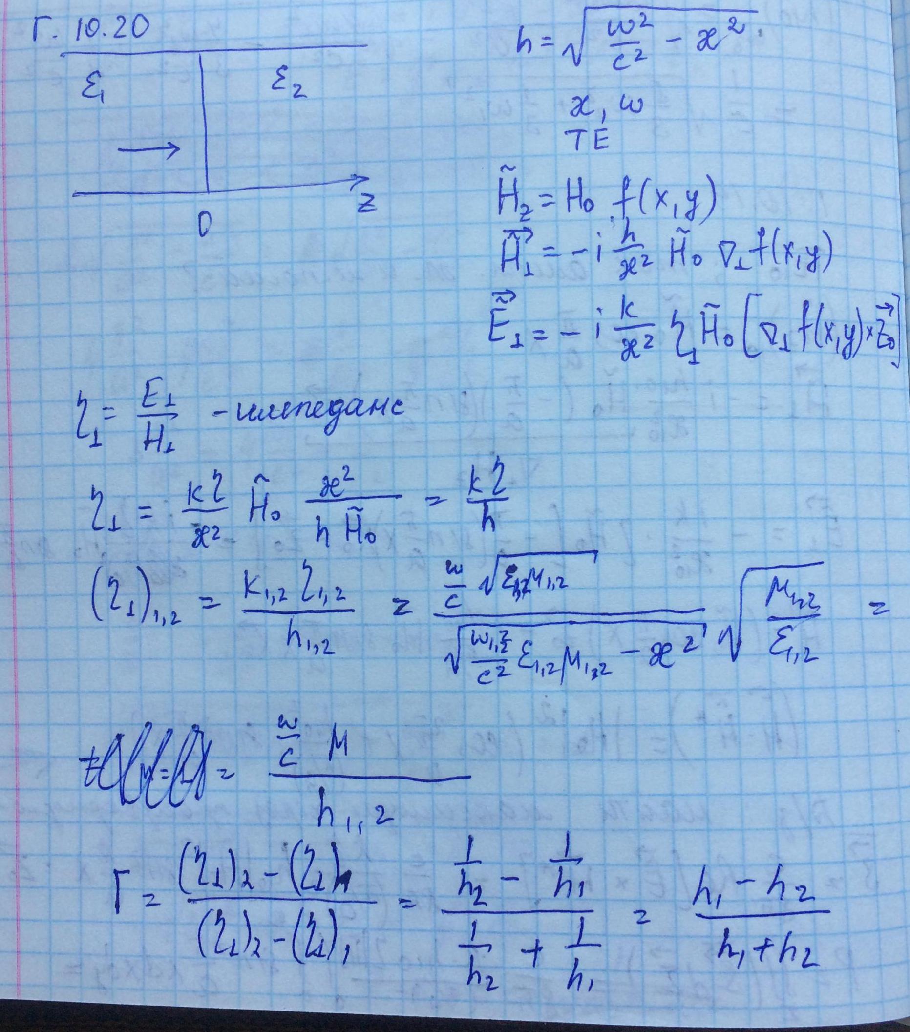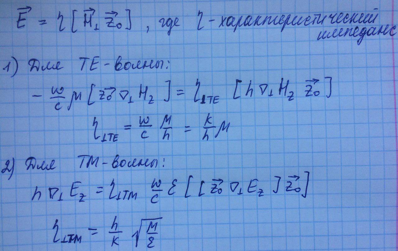 Характеристический импеданс мод волновода имеет разный вид для ТЕ и ТМ-волн. Найдем их:
