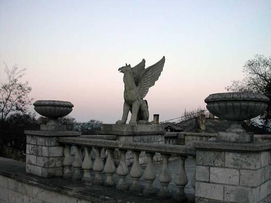К городу можно подняться по Большой Митридатской лестнице в 4 сотни ступенек, которая украшена скульптурами мифических существ – грифонами. Это существо с львиным телом и птичьими крыльями и головой является символом Керчи и присутствует на его гербе. Ступая по лестнице, встретите небольшую часовню – мавзолей Стемпковского.