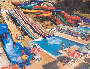 В аквапарке можно развлечься на аттракционах горках разной высоты «Камикадзе», «Мульти», «Водяная трубка». Любят туристы 100-метровые горки «Черная дыра» и «Гигант». Многим запомнится 320-метровый аттракцион «Сумасшедшая река». Имеются бассейны с искусственными волнами, а также детский бассейн с пещерами и водопадом. Часть этих аттракционов работает до 12 часов дня, а часть принимает эстафету после 12 часов.