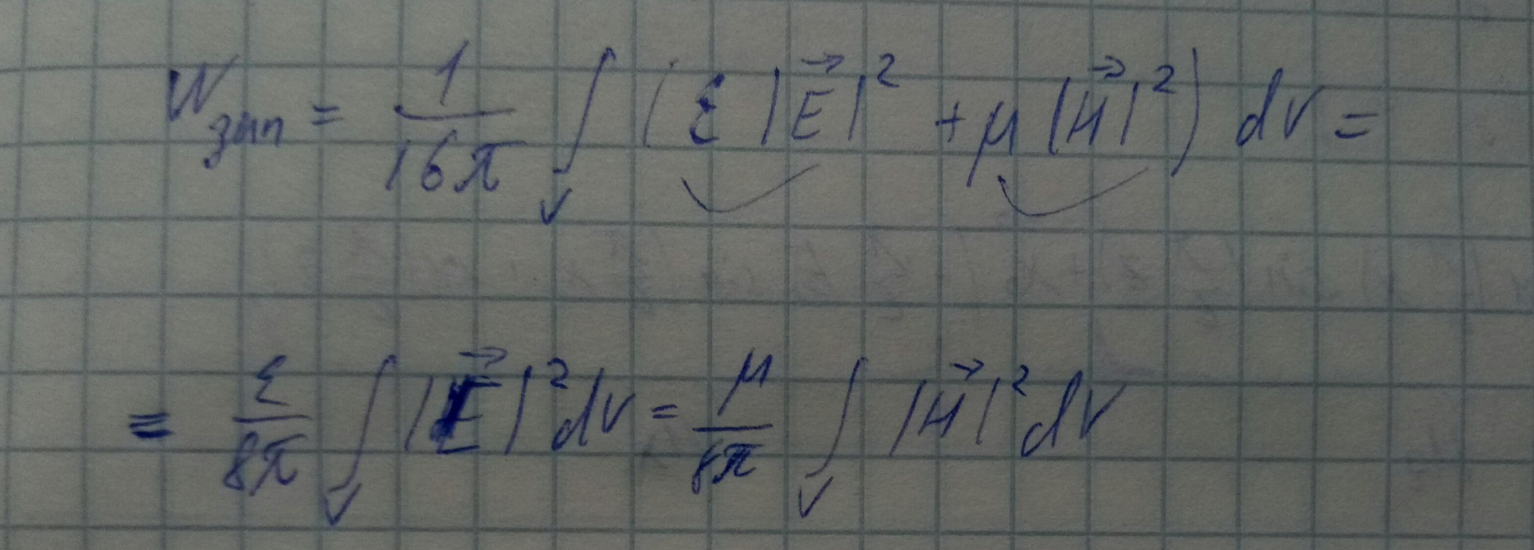 То есть запасенную энергию можно вычислить через комплексные амплитуды магнитного и электрического полей.