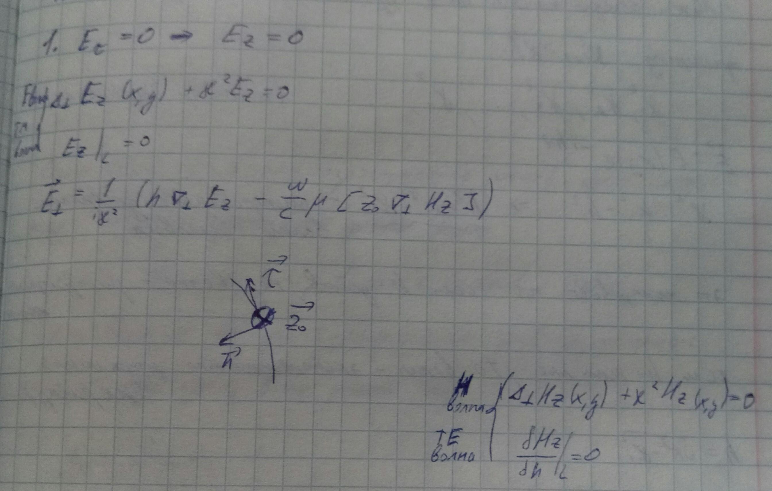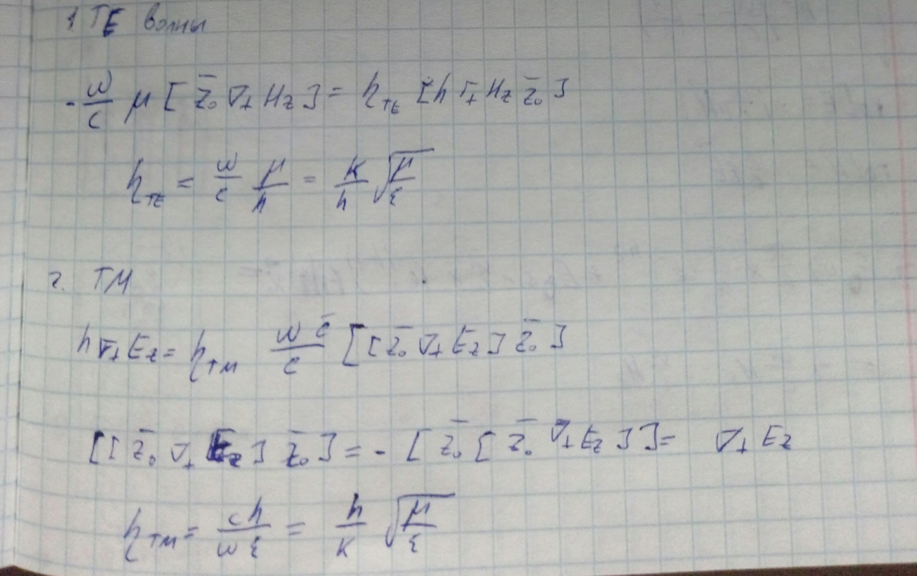 Введем 2 граничных условия: первое уравнение системы написано для E-волн, второе — для ТМ-волн.