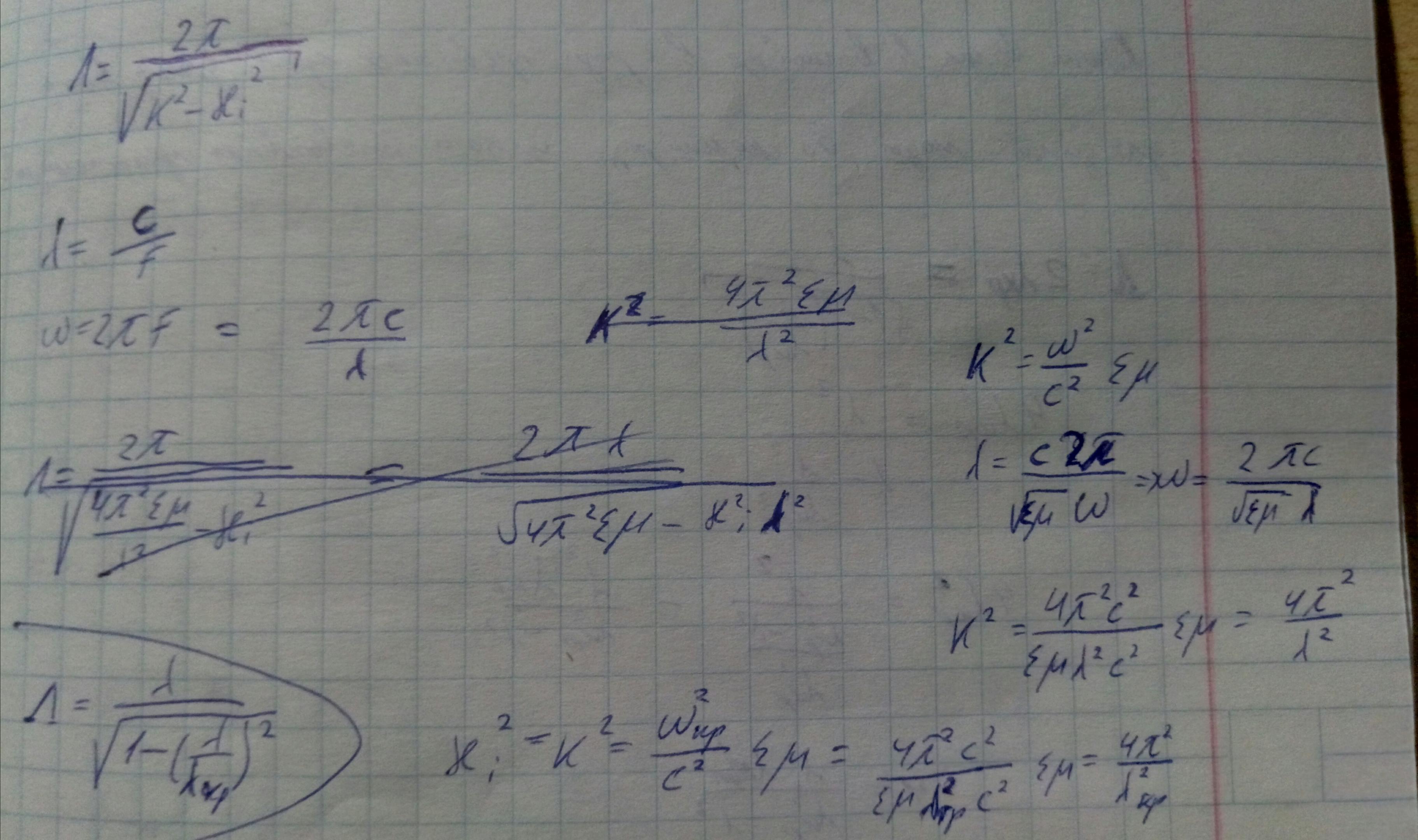 Принято выражать длину волны в волноводе через длину волны в свободном пространстве и критическую длину волны данной моды.