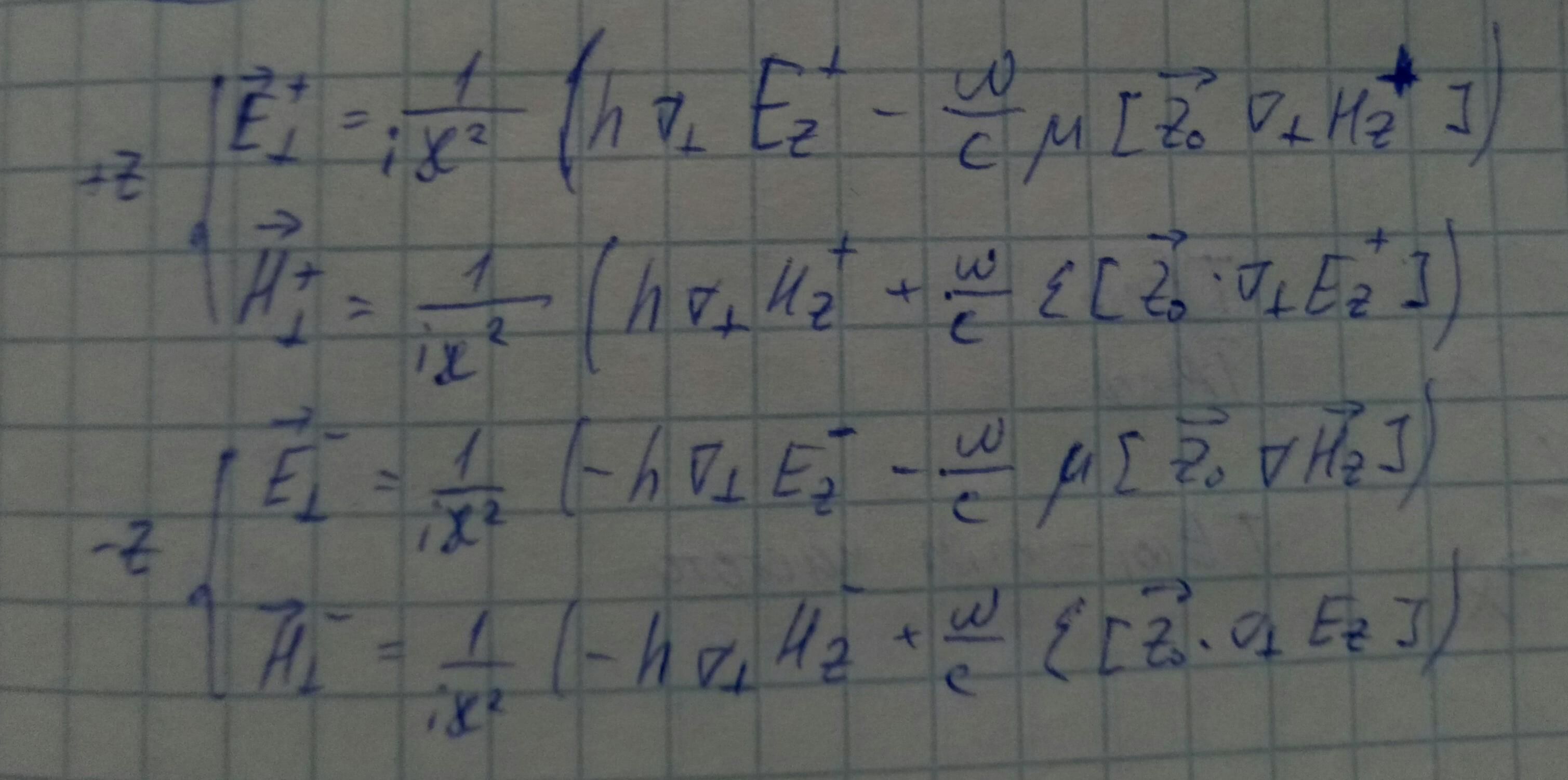 Используем формулы, представляющие поперечные компоненты полей через продольные.