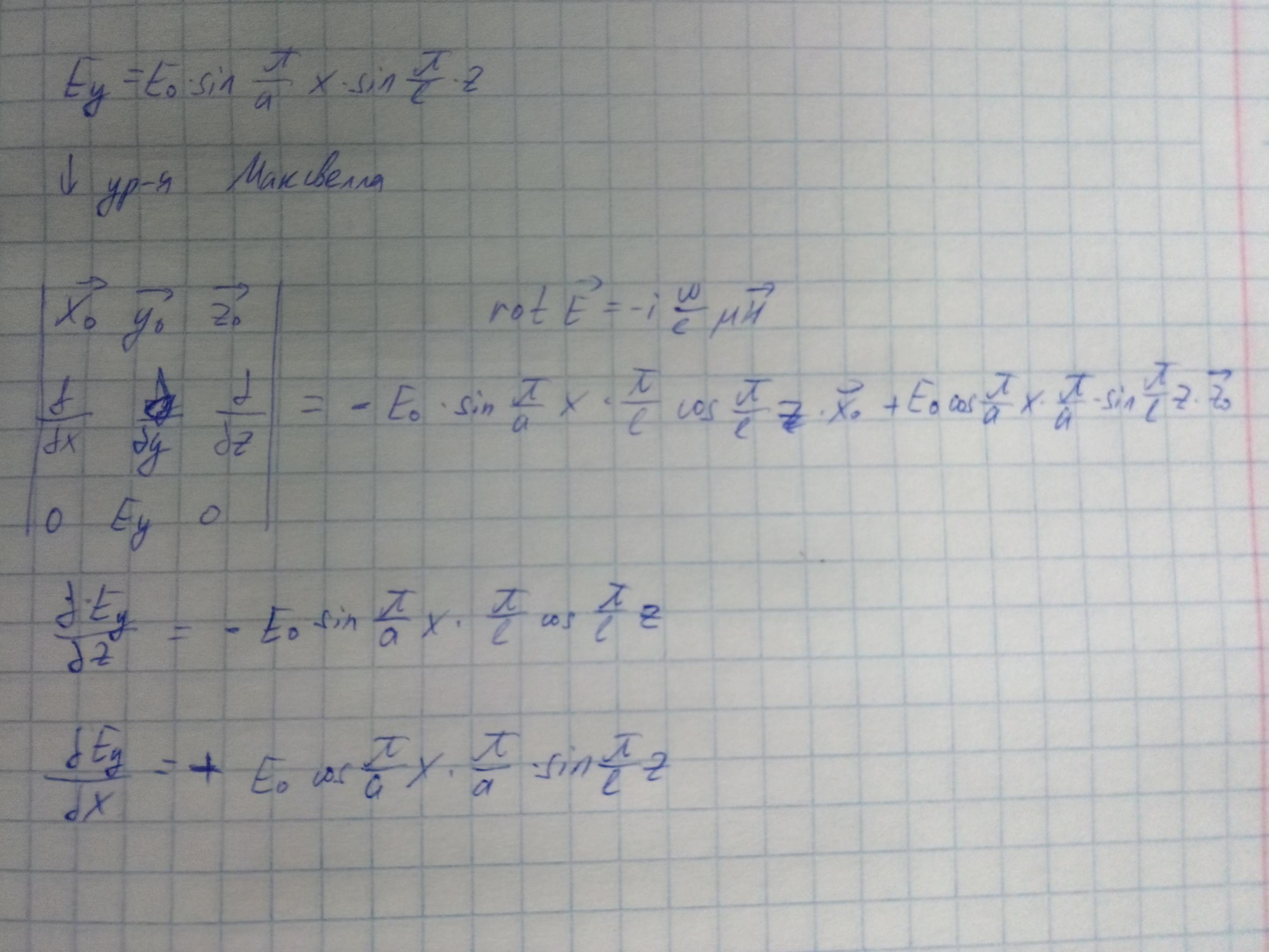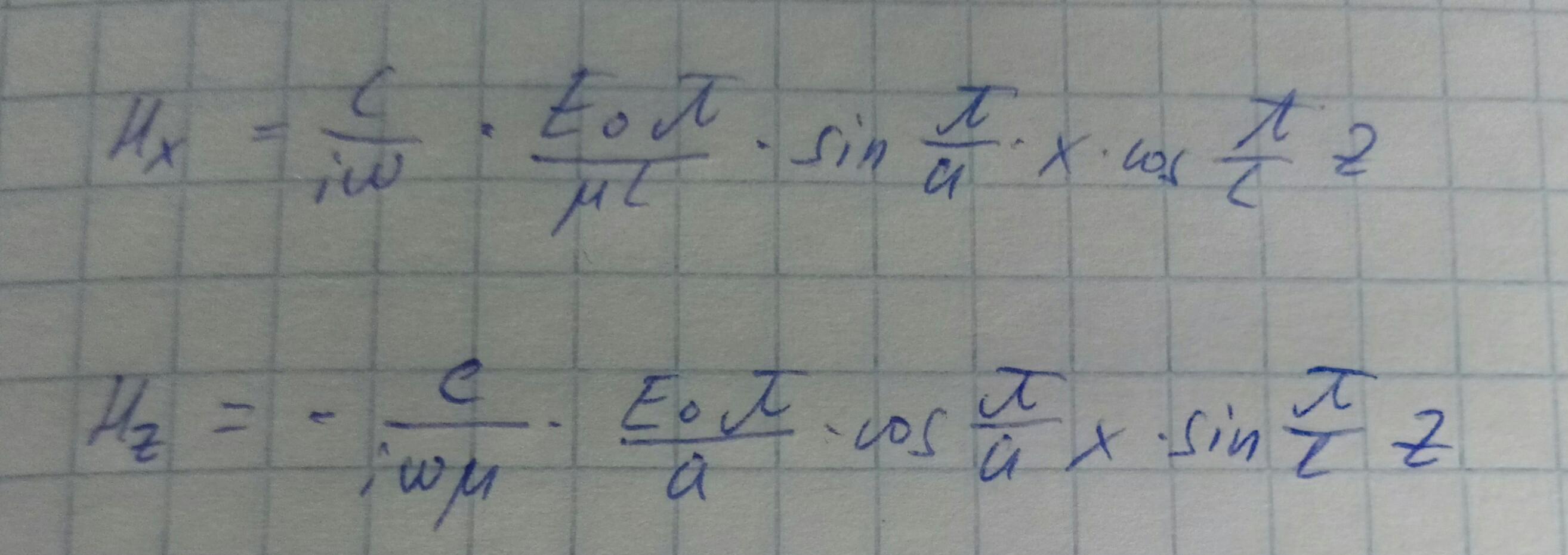 Найдём все поля данного резонатора для моды ТЕ101. Выразим компоненты поля, зная выражение Ey для прямоугольного резонатора моды TE101 и воспользуемся уравнением Фарадея, с помощью которого выразим составляющие магнитного поля.