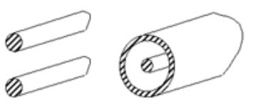 Разместим на центральном проводнике заряд с линейной плотностью +τ, а на внешнем проводнике — -τ.