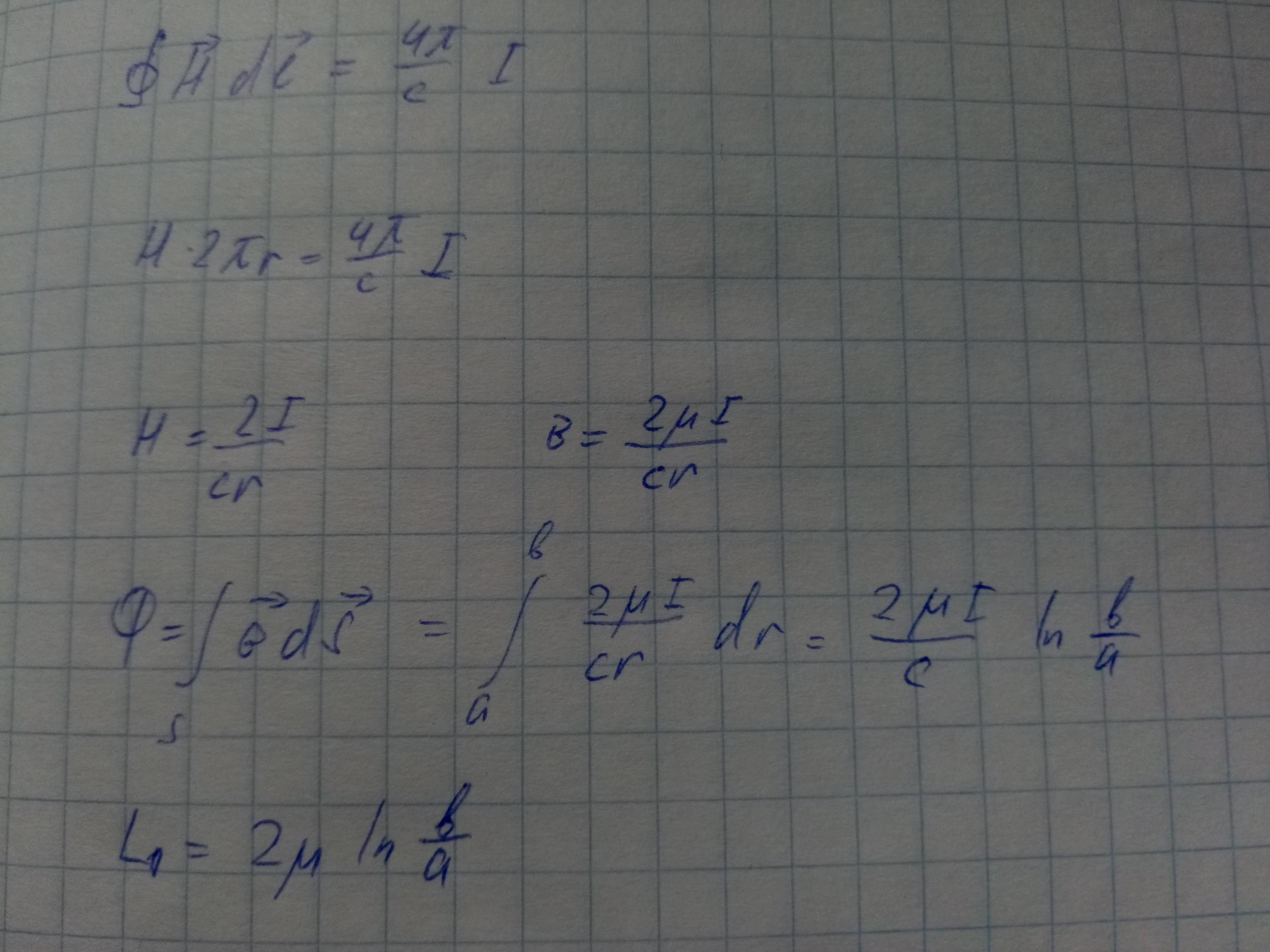 Рассмотрим коаксиальный волновод и найдём для него погонную C и погонную L.