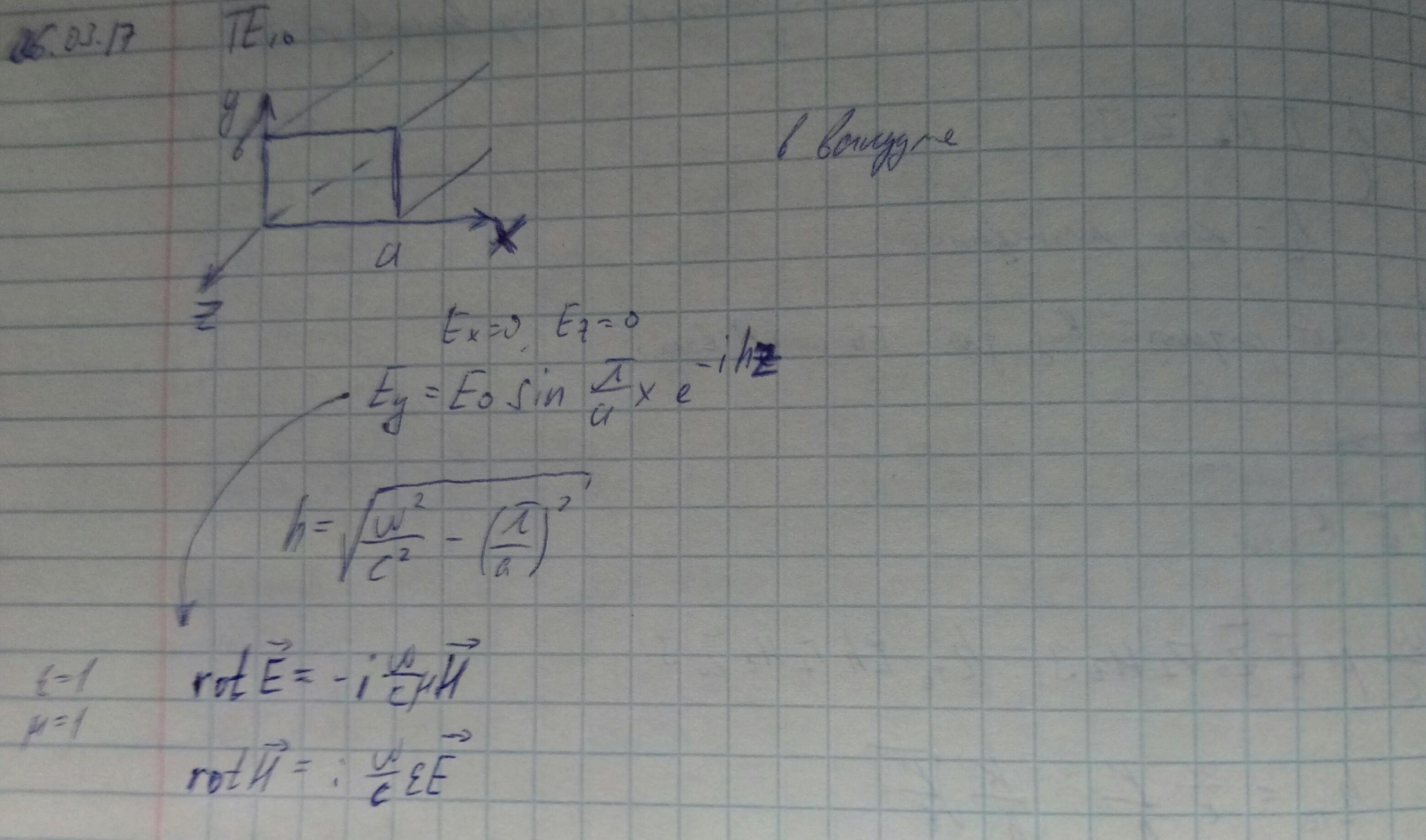 Дана волна типа TE10, у которого известна мощность, переносимая через поперечное сечение волновода. Требуется найти величину E0. Решение: ![]() |