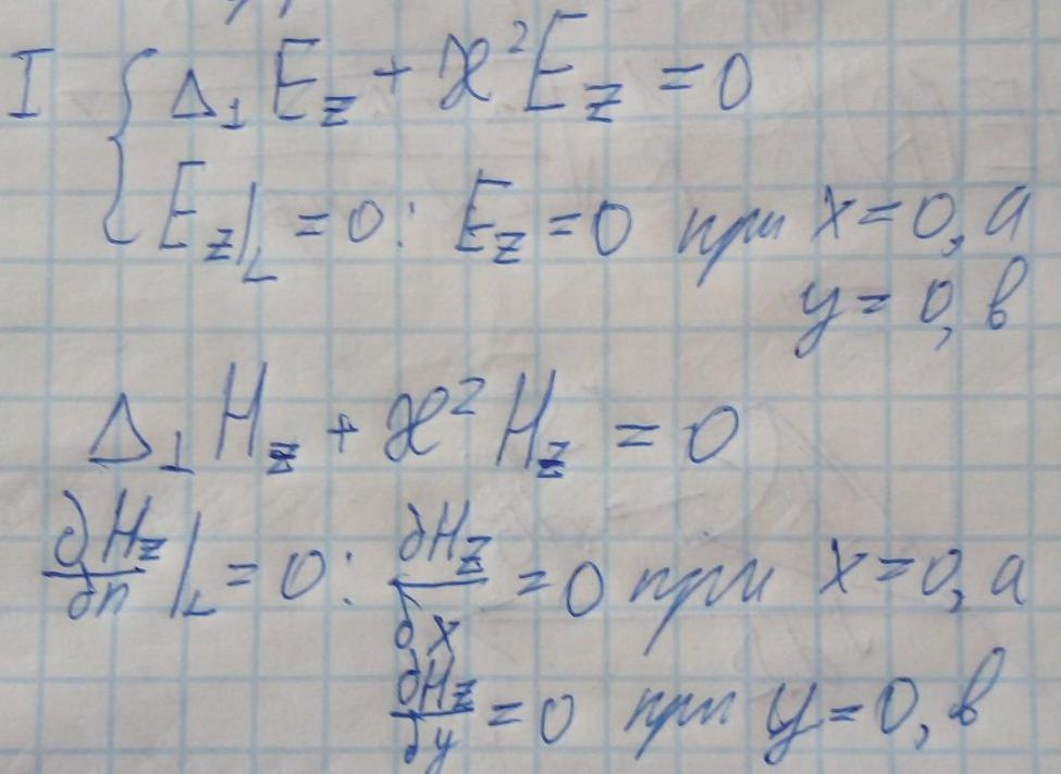 Рассмотрим прямоугольный волновод, при условии что он является регулярным и его стенки идеально проводящие. Значит вместо шести неизвестных компонент поля имеем только две: Ez и Hz, при этом задача о нахождении полей волновода распадается на две независимые (краевые) задачи.Значит в данном волноводе существует два типа волн: TE и TM.
