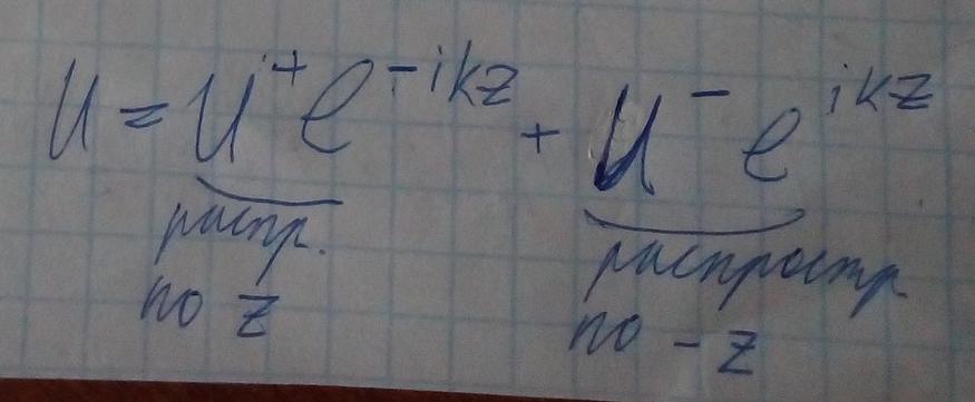 Знак "+" отвечает за компоненту напряжения, направленную вдоль оси z, а знак "-" отвечает за компоненту напряжения, направленную против оси z. Будем работать с волной направленной в положительном направлении z.