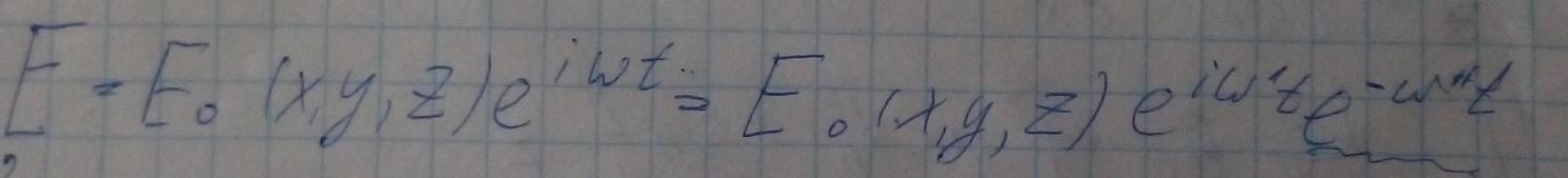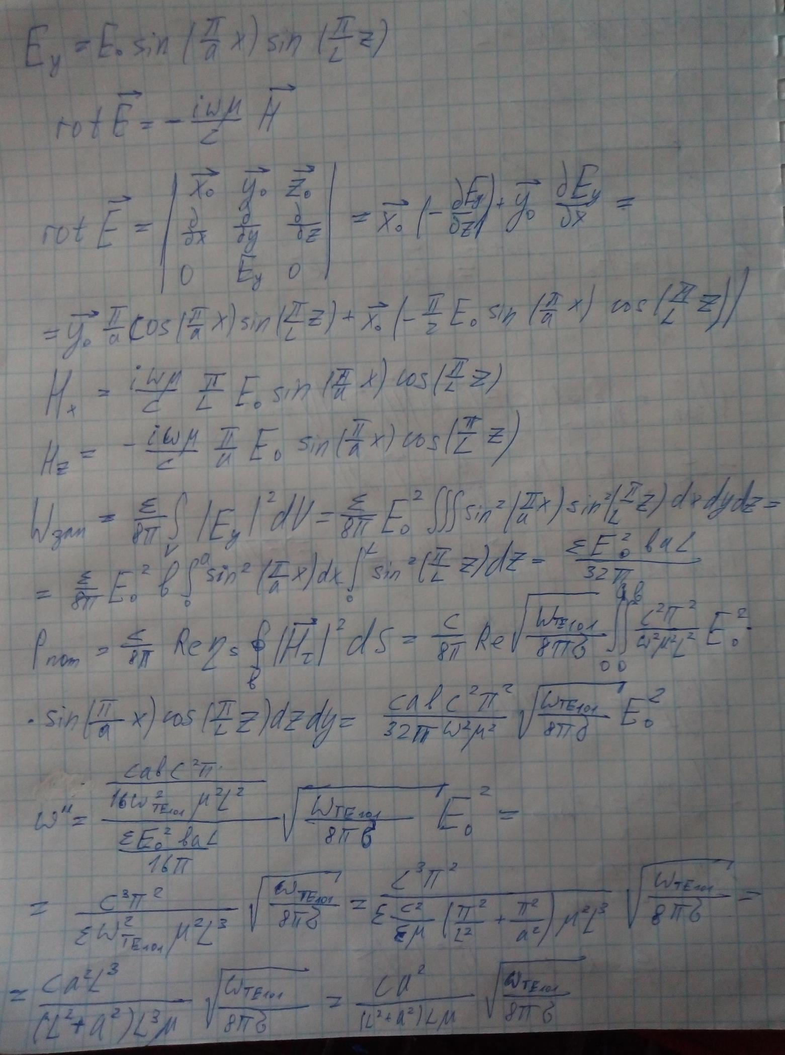 Рассмотрим резонатор с потерями, но на тех же модах что и без потерь. Затухания в таком резонаторе характеризуются мнимой частью комплексной частоты (декрементом затухания) . Определим данную величину для прямоугольного резонатора.