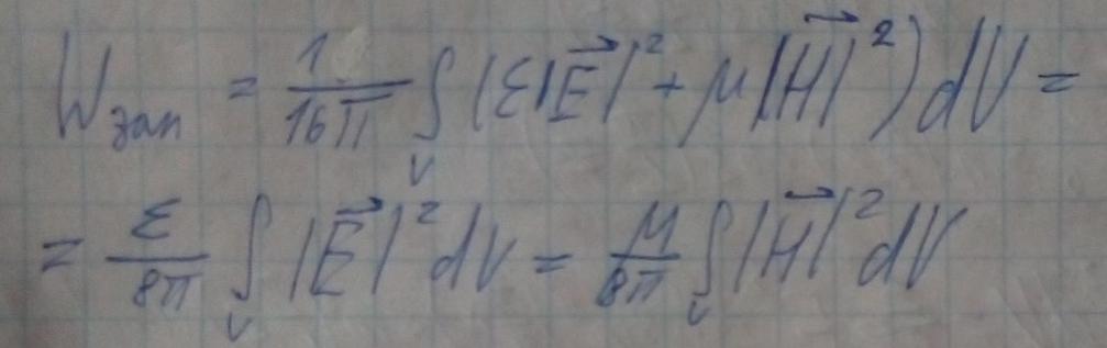 То есть запасенную энергию можно вычислить через комплексные амплитуды магнитного и электрического полей.