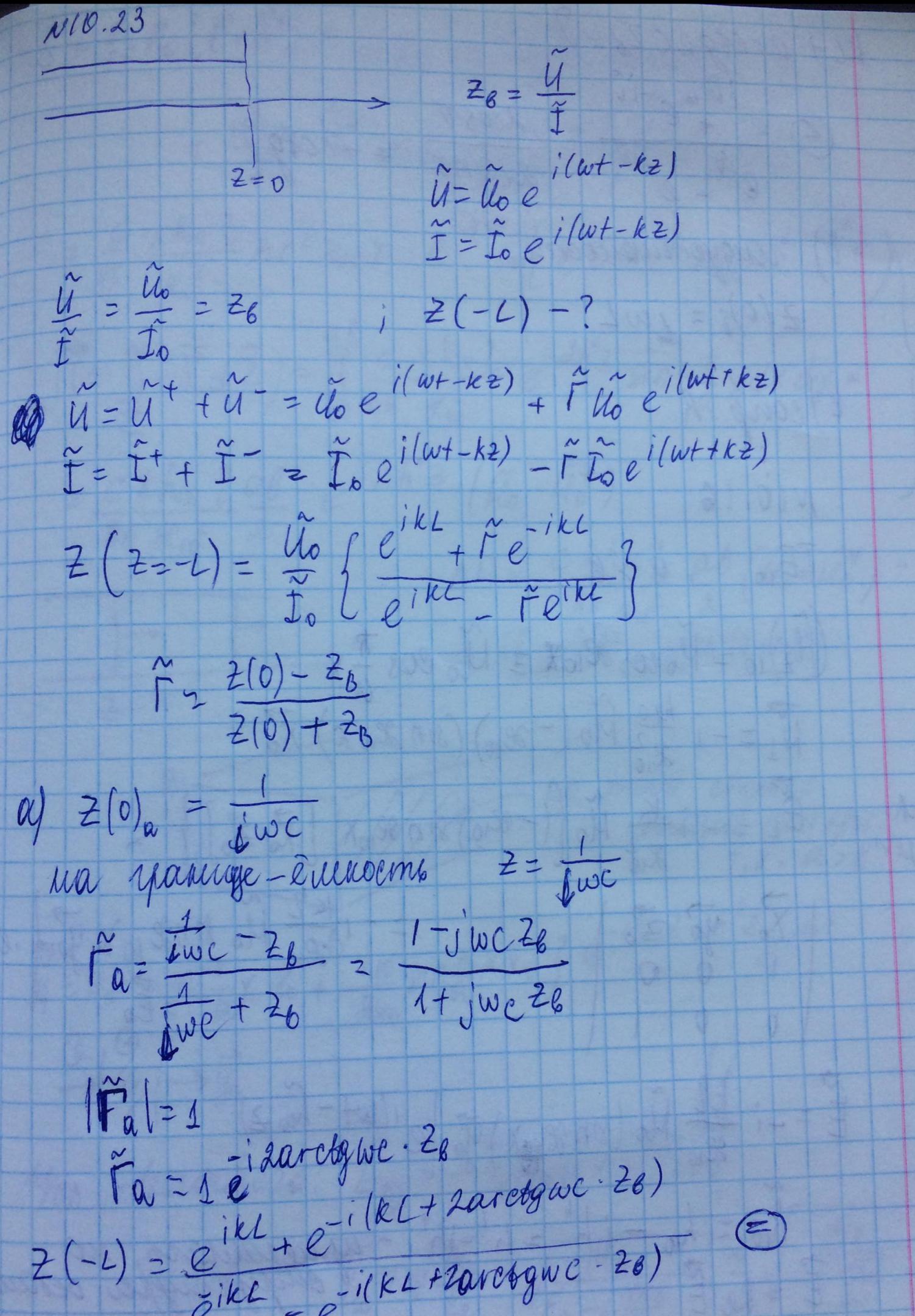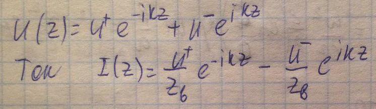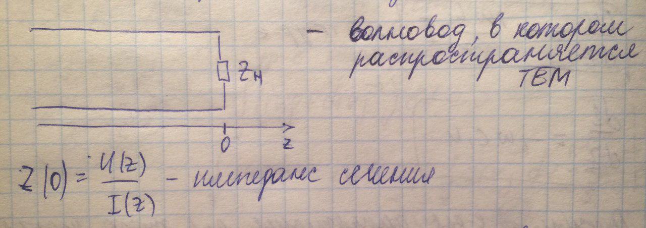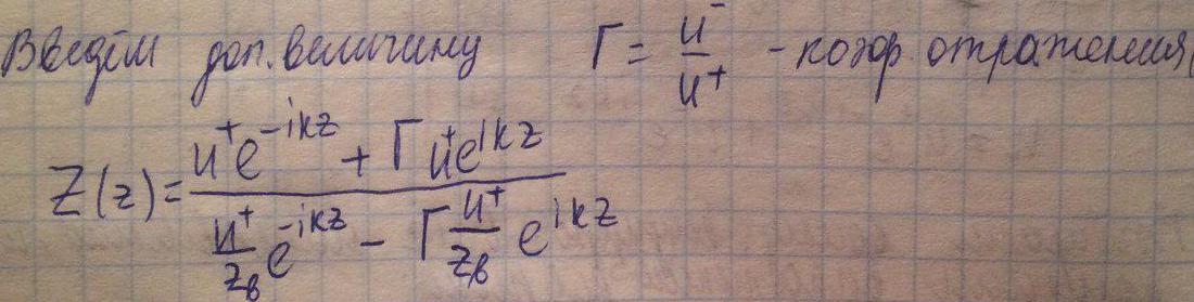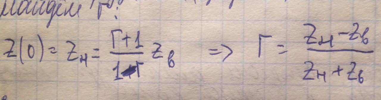 В сечении z=0 отношение тока к напряжению определяется величиной нагрузки, которая задана. Используя это, найдем Г: