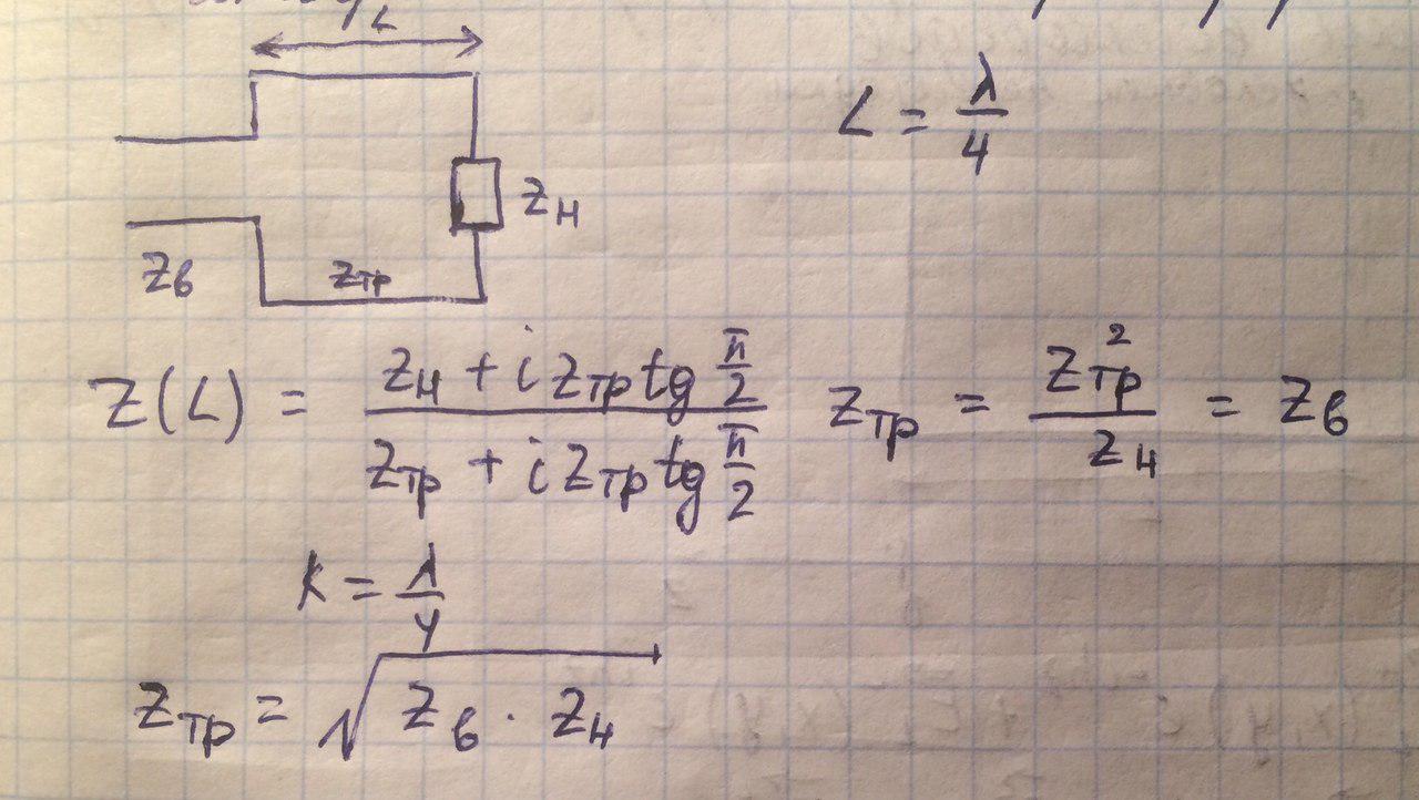 Подставив Г в Z(z), найдём выражение для импеданса сечения Z, используя формулы Эйлера: