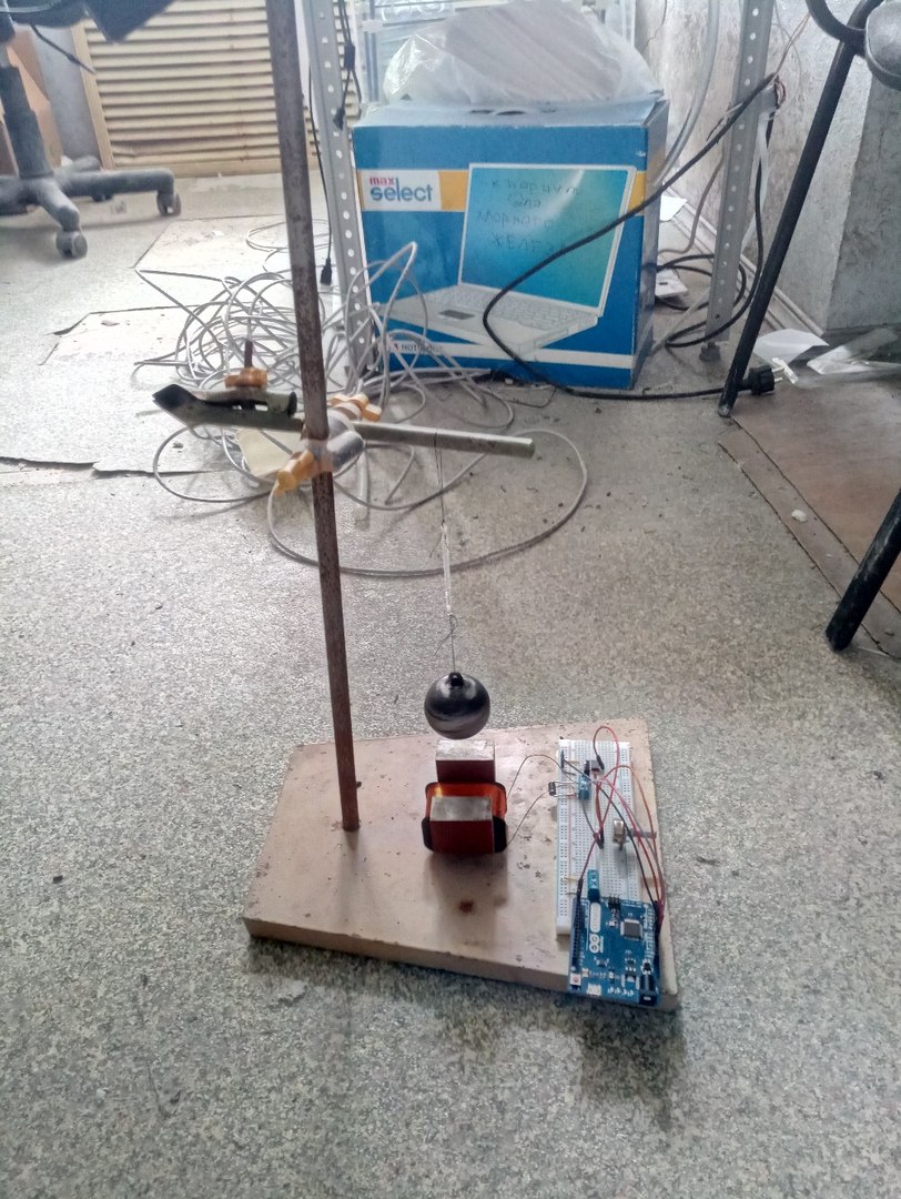 1. Создав магнитное поле с помощью кнопки старт вывести из равновесия груз и наблюдать колебания в то время как магнитное поле импульсами воздействует на груз .