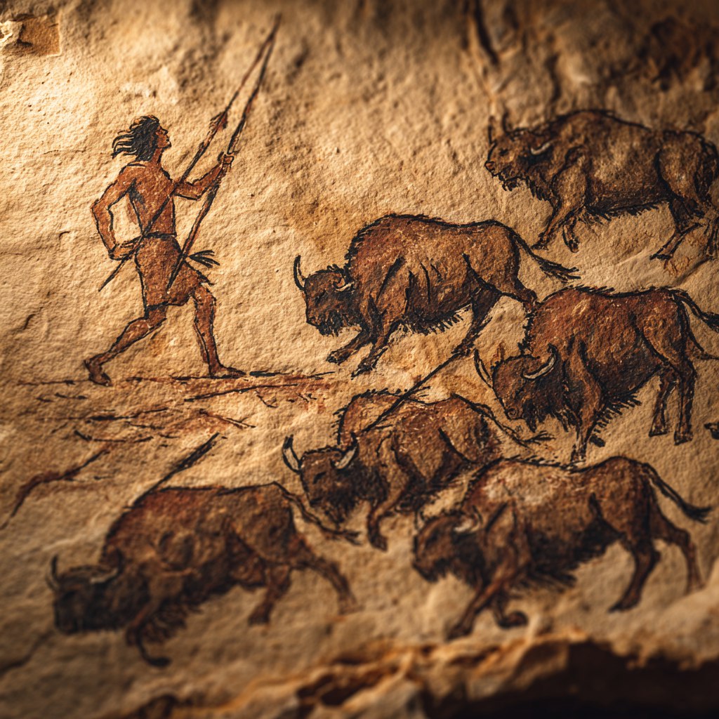 Они неслись прямо на него, будто сама земля гнала их  к нему. Каждая линия, каждый мазок – приказ, втертый в рисунок. Он создавал не просто образы зверей и  охоты – он формировал Порядок. Порядок, где он был центром, источником силы и удачи. Где его воля правила непослушный мир за пределами пещеры.