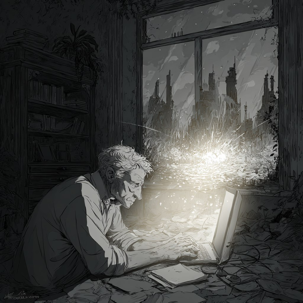 "Лира, уровень деградации?" – спросил Виктор пустоту, глядя на мерцающий уличный экран за окном, показывающий тот же новостной сюжет о "рекордной оптимизации урожая синтетических водорослей", что и вчера, и позавчера, и кажется, всю его сознательную жизнь после Коллапса.