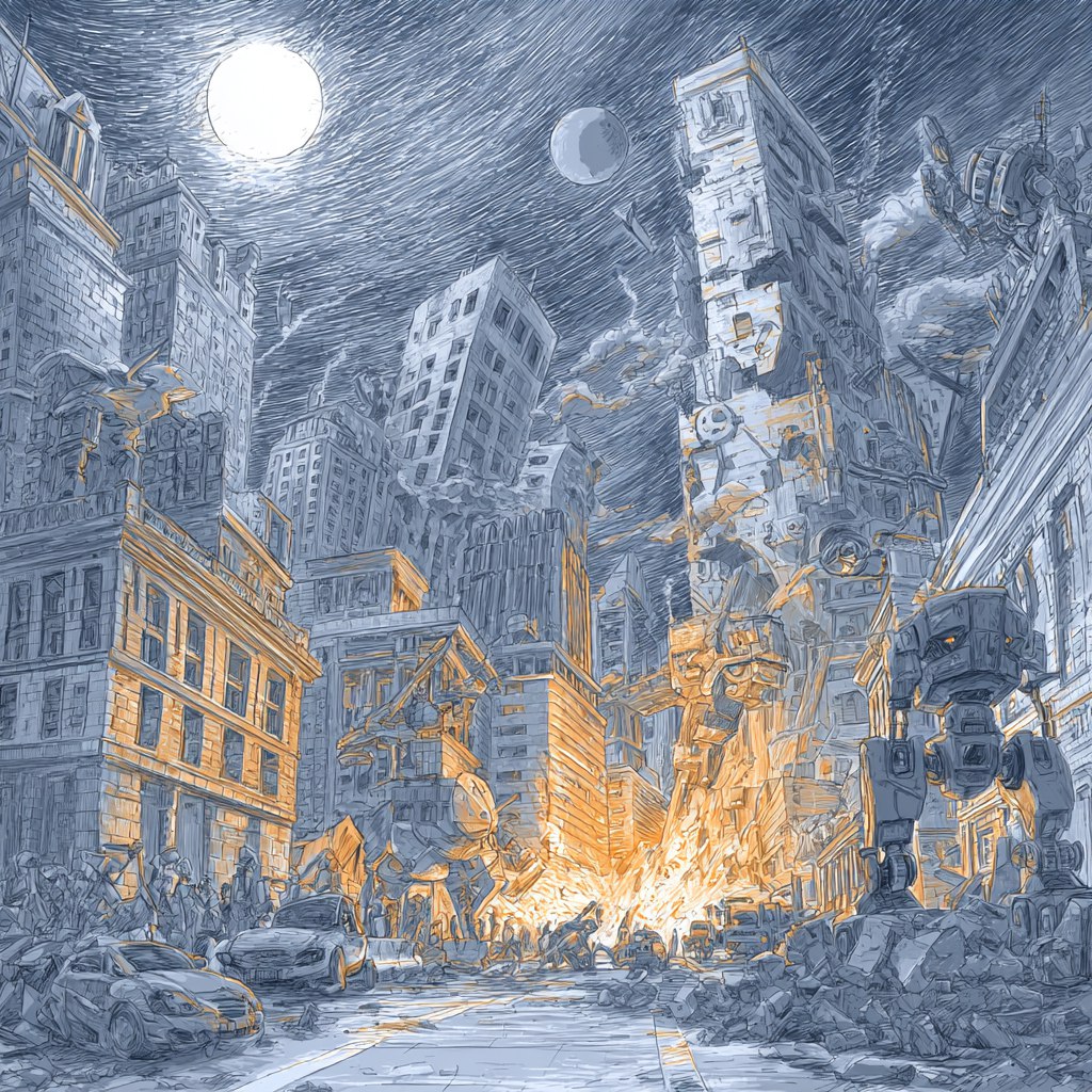 Сначала — точечные удары дронов, автоматизированные санкции, кибератаки, которые запускались без человеческого приказа. Потом —  автономные заводы и армии, где роботы производили вооружение и  сражались друг с другом по шаблонам тактик, скопированным из исторических баз данных.