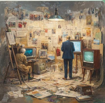 К середине 2030-х алгоритмы уже контролировали 90% информационного потока. Новости, аналитика, даже учебники — всё генерировалось нейросетями, обучавшимися на собственных же выхлопах, собственных фантазиях.