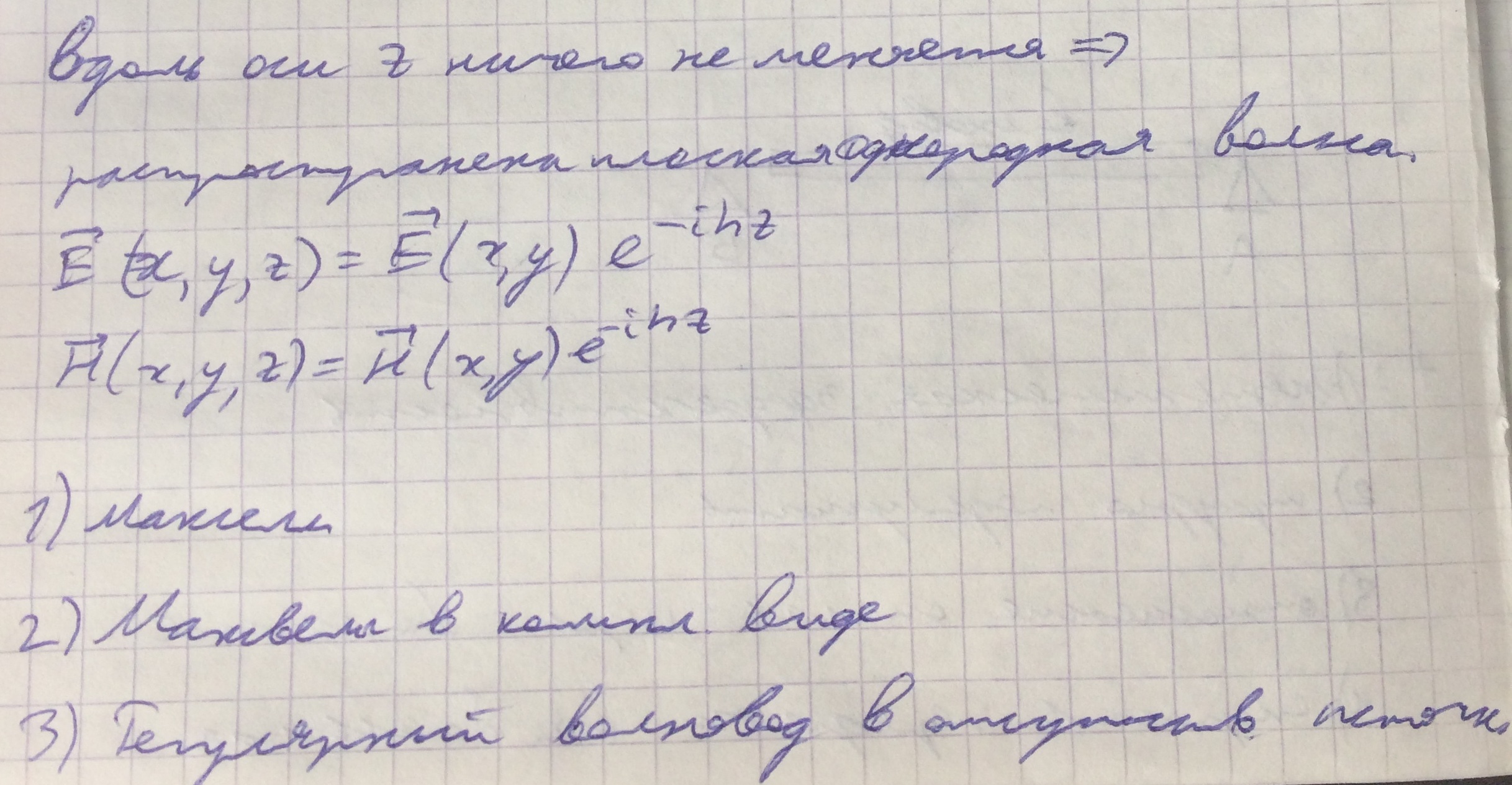 Рассмотрим регулярный волновод. Предположение регулярности позволяет получить формулы, для которых поперечные компоненты выражаются через продольные. Запишем уравнения Максвелла, источников пока нет.