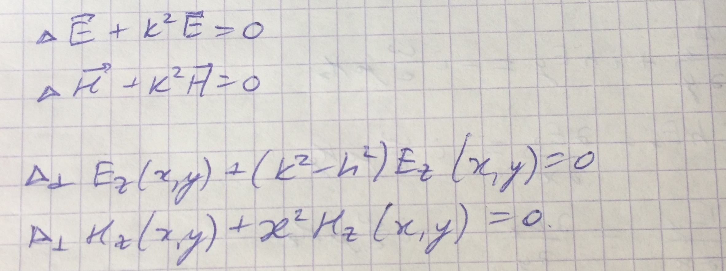 Запишем уравнение Гельмгольца для электрического и магнитного поля.