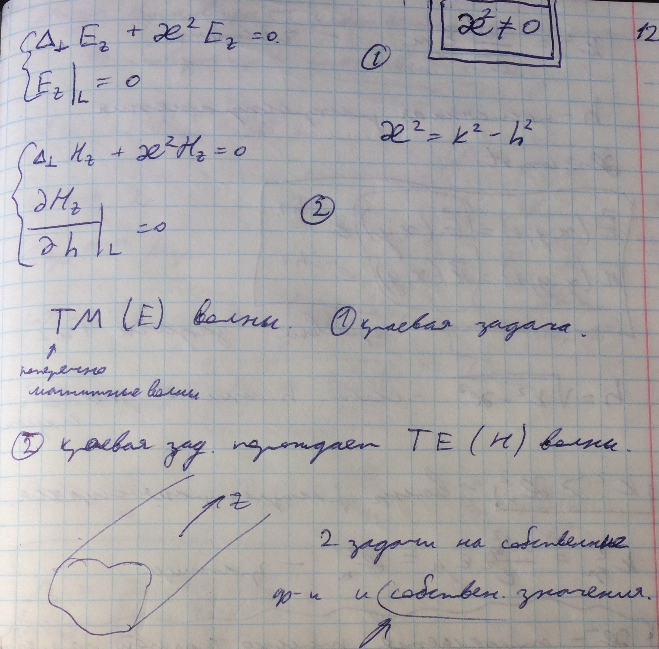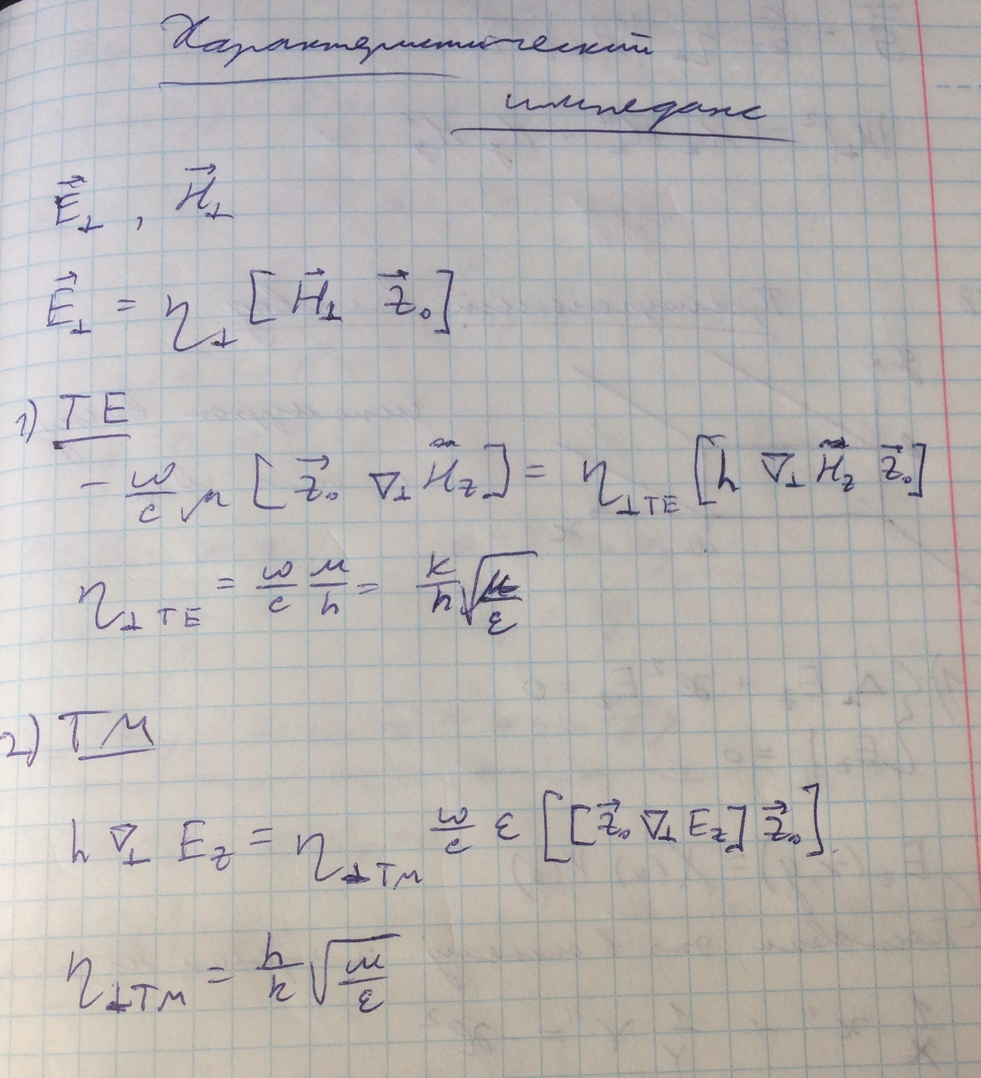 Введем 2 граничных условия: первое уравнение системы написано для E-волн, второе — для ТМ-волн.
