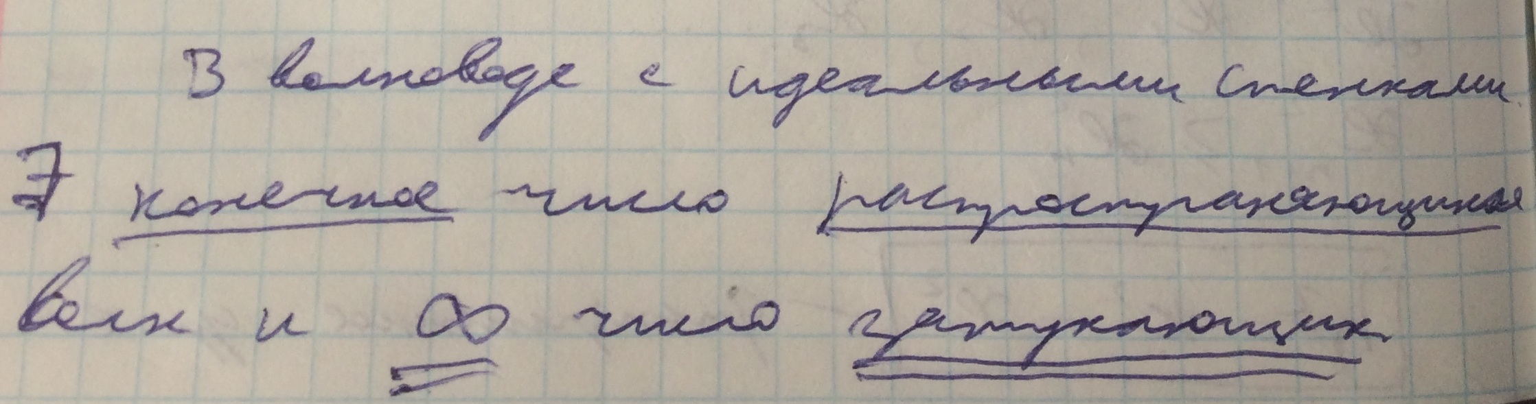 В идеально проводящем волноводе фазовая скорость всегда больше фазовой скорости в свободном пространстве.