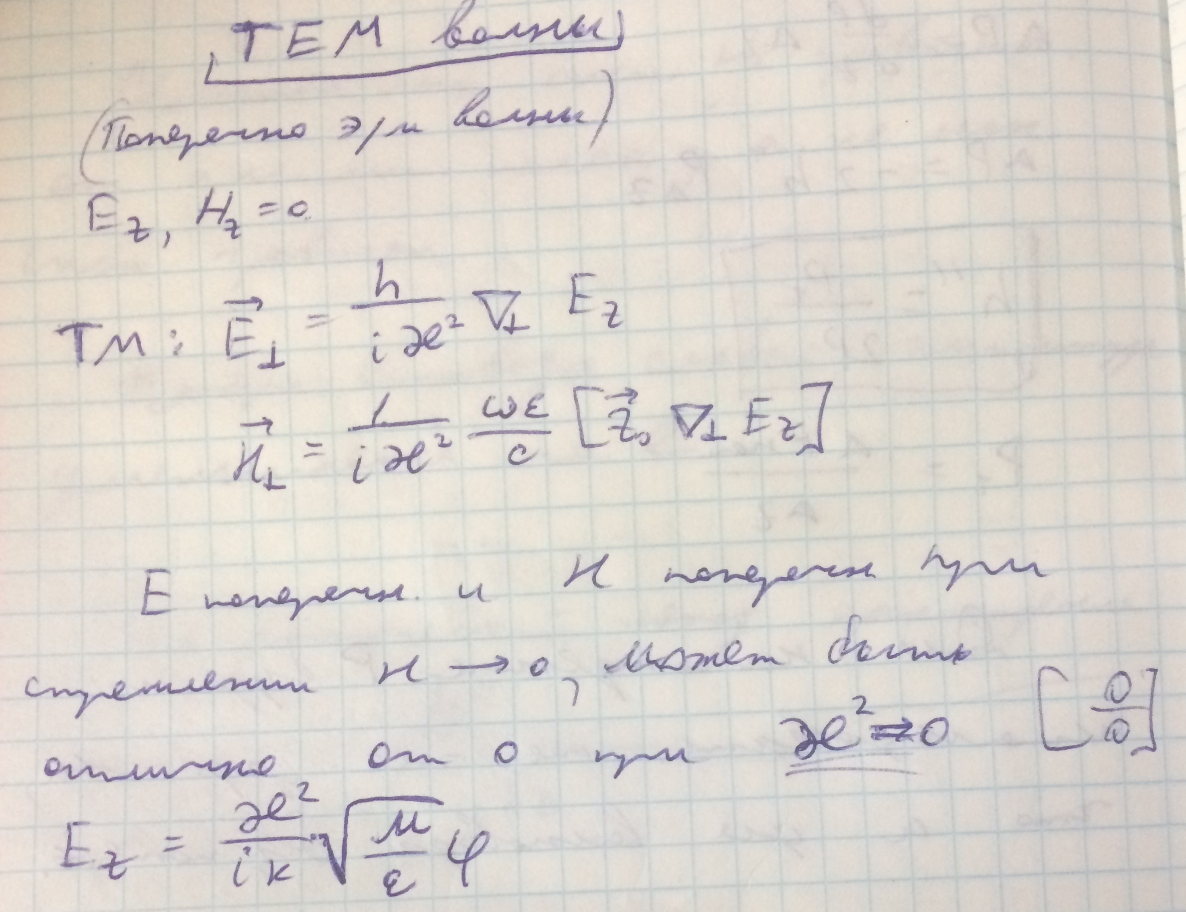 TEM-волны (поперчено электромагнитные) - волны, у которых компоненты E и H перпендикулярны направлению распространения.