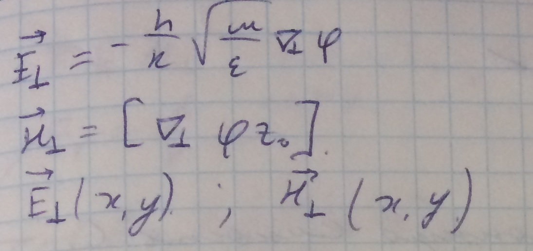 Получили, что электрическое поле данной волны такое же как и в статике. Это означает, что TEM волны возможны только в тех линиях передач, в которых могут существовать статические поля. При этом структура поля совпадает со структурой поля в статике, так как статическое поле не зависит от продольной компоненты.