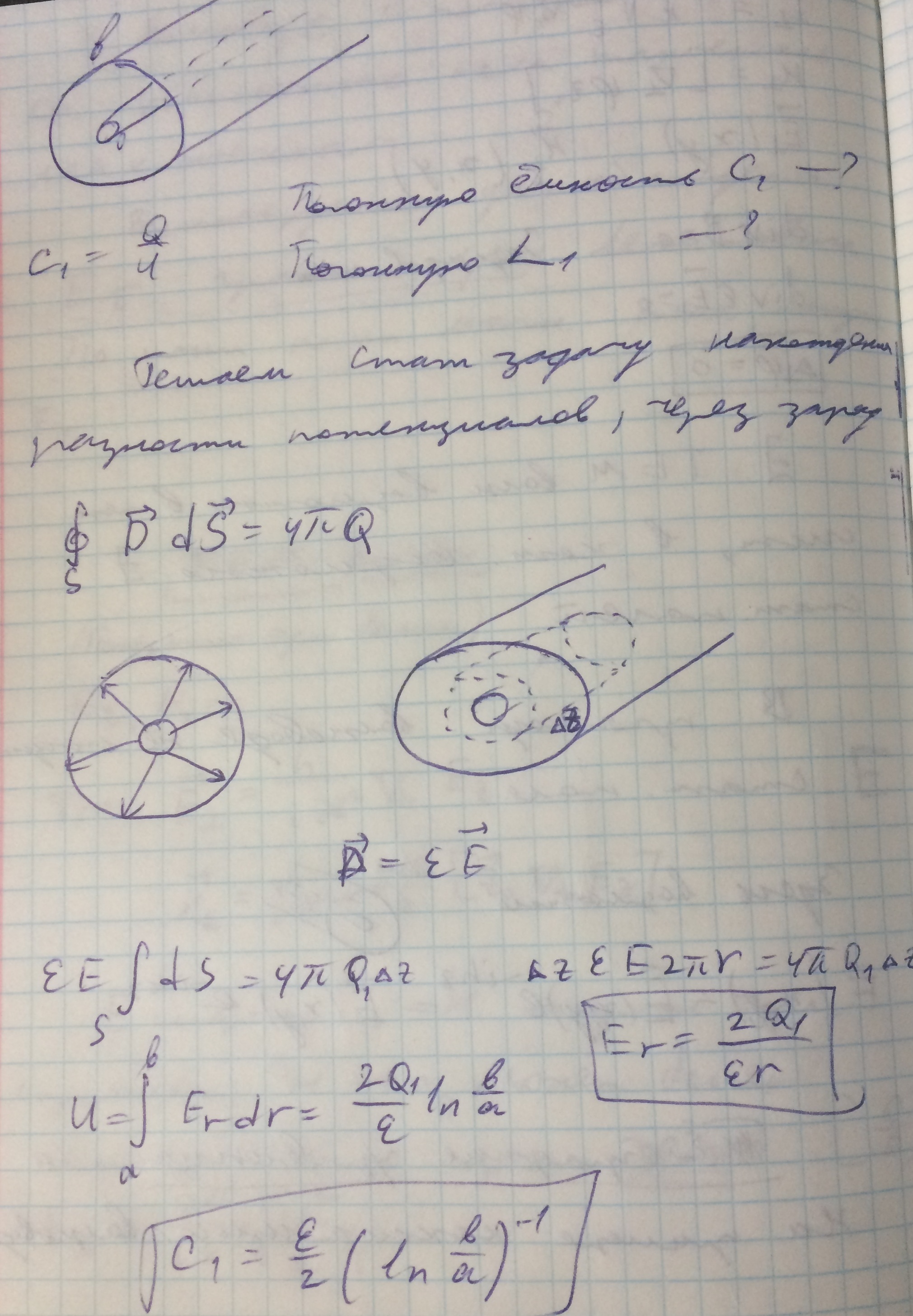 Исследуем коаксиальный волновод и найдем его погонную емкость и погонную индуктивность. При этом берем статические поля.