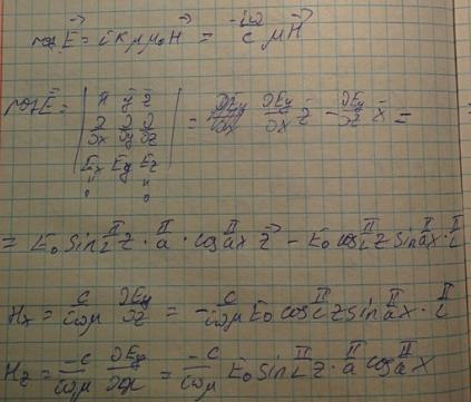 Выразим компоненты поля, зная выражение Ey для прямоугольного резонатора моды TE101: