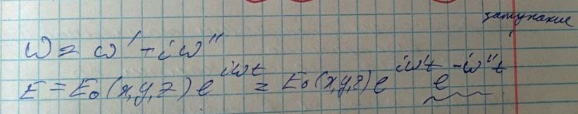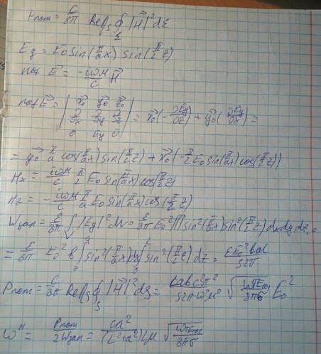 Рассмотрим резонатор с потерями, но на тех же модах что и без потерь. Затухания в таком резонаторе характеризуются мнимой частью комплексной частоты (декрементом затухания) . Определим данную величину для прямоугольного резонатора.