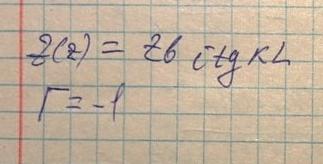 При данном режиме импеданс нагрузки равен бесконечности, соотвественно коэффициент отражения равен единице, а импеданс в сечении по формуле пересчета импедансов равен: