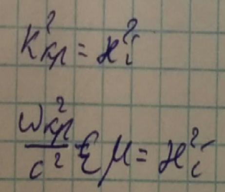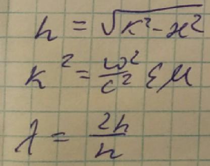 Принято выражать длину волны в волноводе на частоте ω через длину волны в свободном пространстве соответствующей заданной частоте и критическую длину волны данной моды.