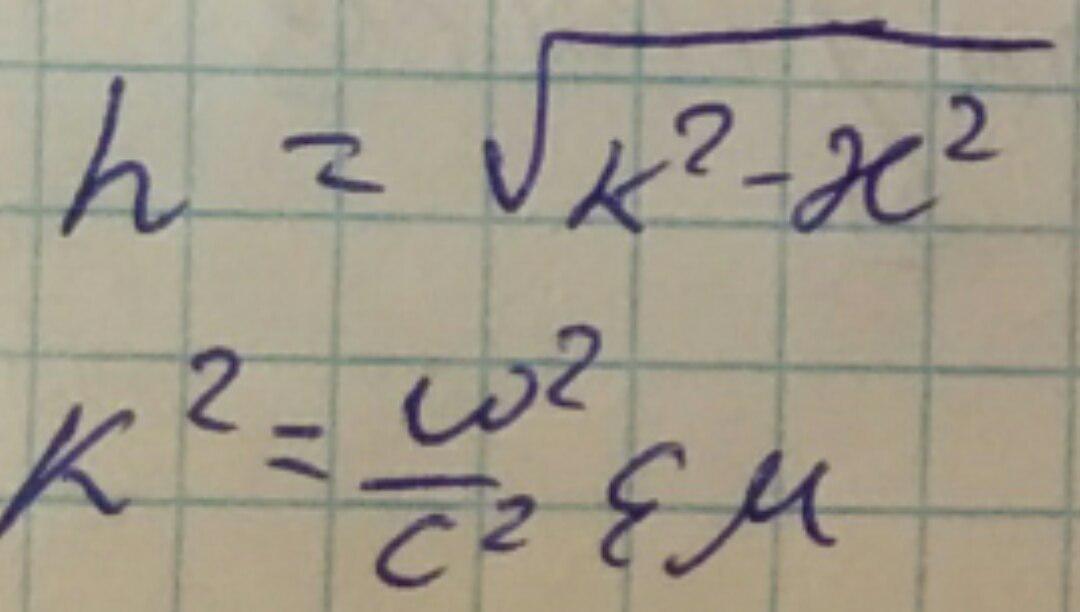 — этот вид зависимости показывает, что если h — действительное, то волна является распространяющейся, если же h — мнимая, то волна — потенциально спадающая (не распространяющаяся).