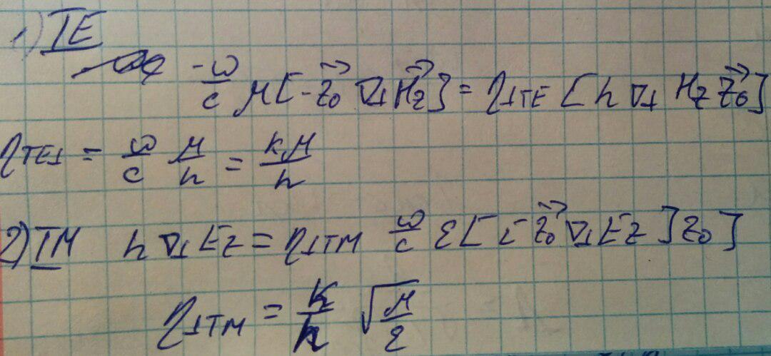 Введем 2 граничных условия: первое уравнение системы написано для E-волн, второе — для ТМ-волн.