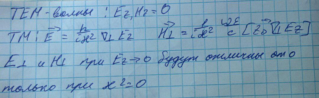 Получили, что электрическое поле данной волны такое же как и в статике. Это означает, что TEM волны возможны только в тех линиях передач, в которых могут существовать статические поля. При этом структура поля совпадает со структурой поля в статике, так как статическое поле не зависит от продольной компоненты.