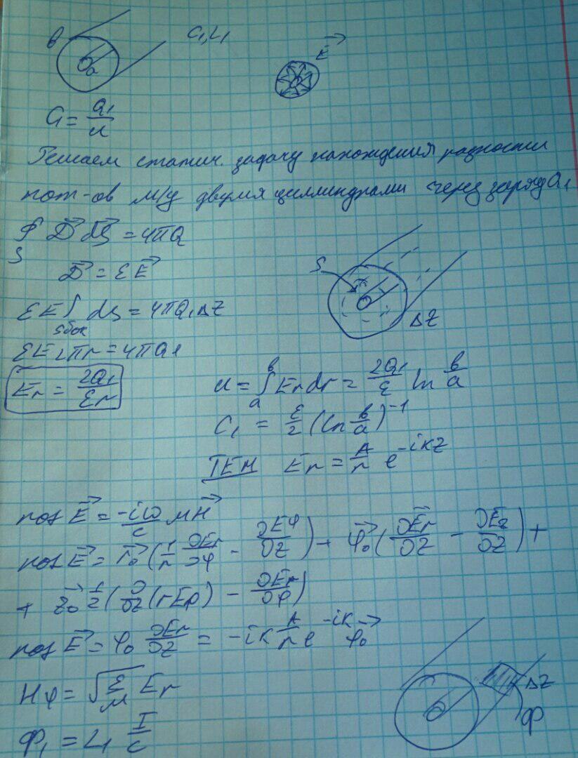 Исследуем коаксиальный волновод и найдем его погонную емкость и погонную индуктивность. При этом берем статические поля.