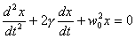В реальных осцилляторах, за счет сил трения, происходит рассеяние (диссипация) запасенной энергии, в результате чего свободные колебания со временем затухают. При движения тела пружинного маятника в вязкой среде, с небольшими скоростями сила трения пропорциональна скорости . При учет диссипации энергии уравнение колебаний пружинного маятника имеет вид линейного дифференциального уравнения второй степени |
