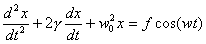 | где Х1(t) — решение однородного уравнения (при нулевой правой части), оно соответствует затухающим собственным колебаниям, a Х2(t) — частное решение, соответствующее вынужденным колебаниям на частоте вынуждающей силы |